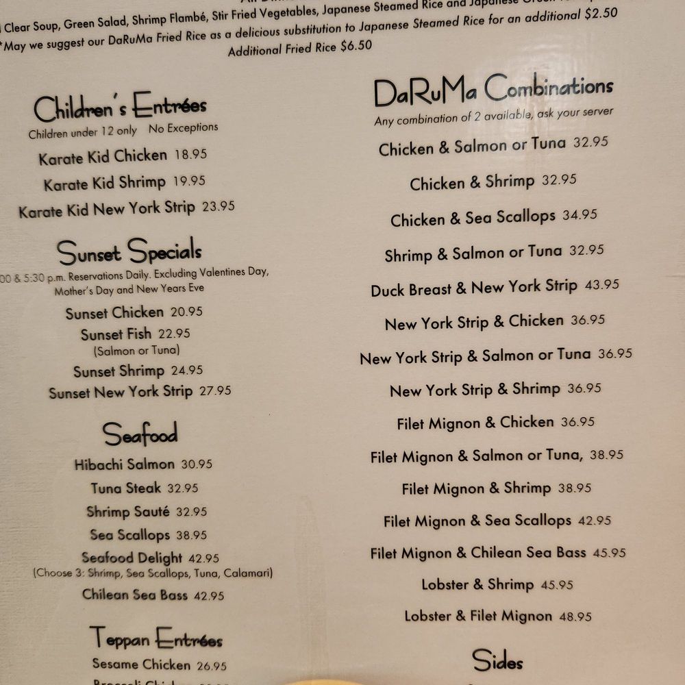 Daruma South Sarasota - Japanese Steakhouse & Sushi Lounge Menu (Update 2025)